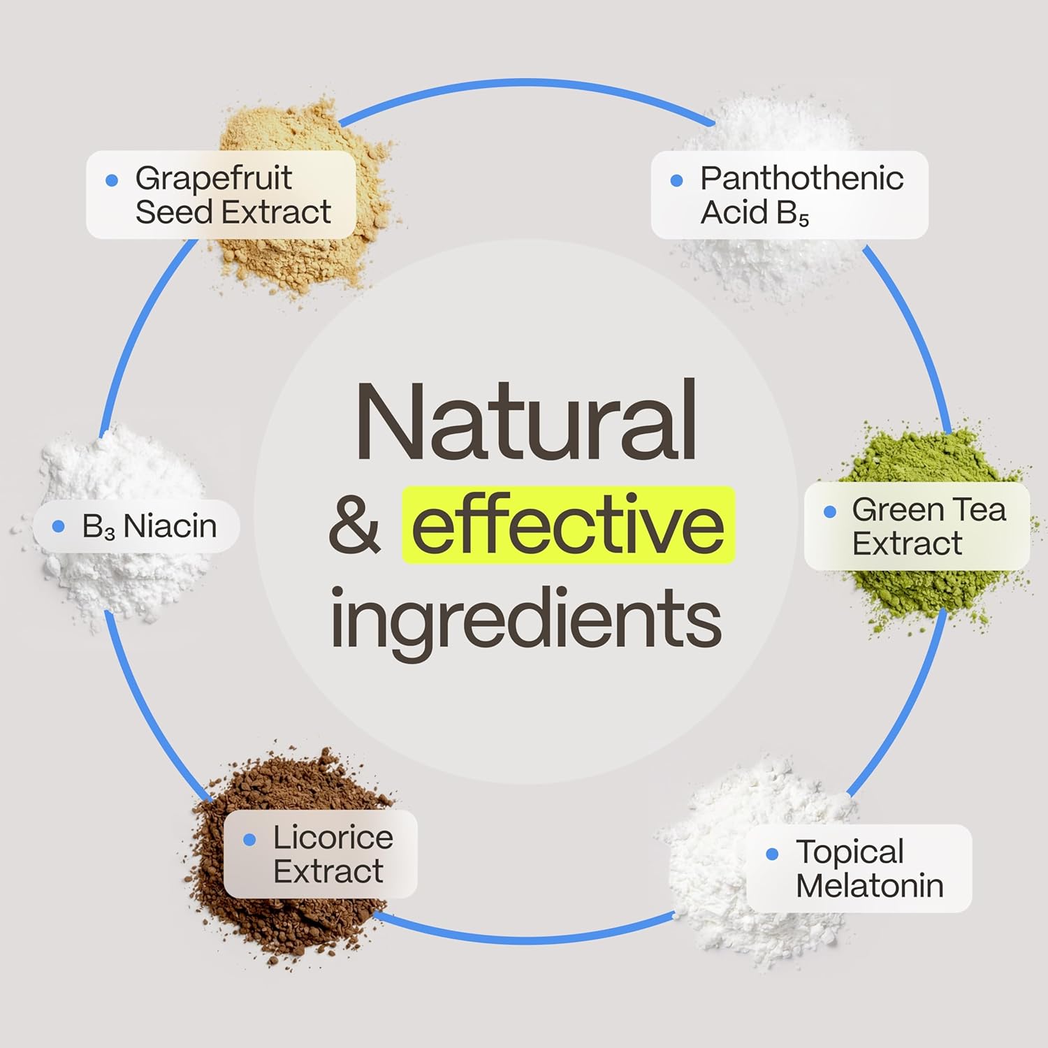 Thành phần: Alcohol, Cimicifuga Racemosa (Black Cohosh) Root Extract, Panthenol, Camellia Sinensis (Green Tea) Leaf Extract, Citrus Grandis (Grapefruit) Seed Extract, Glycyrrhiza Glabra (Licorice) Root Extract / Dipotassium Glycyrrhizate, Niacin, Melatonin.
